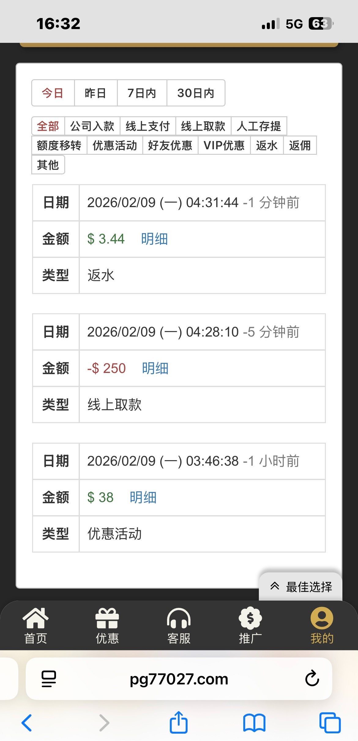 刚接到电话送了38 之前送了很多次都没打出来 这次打出来了 出款已到账 漏接电话的可以去看看 登陆上去就有一键领取