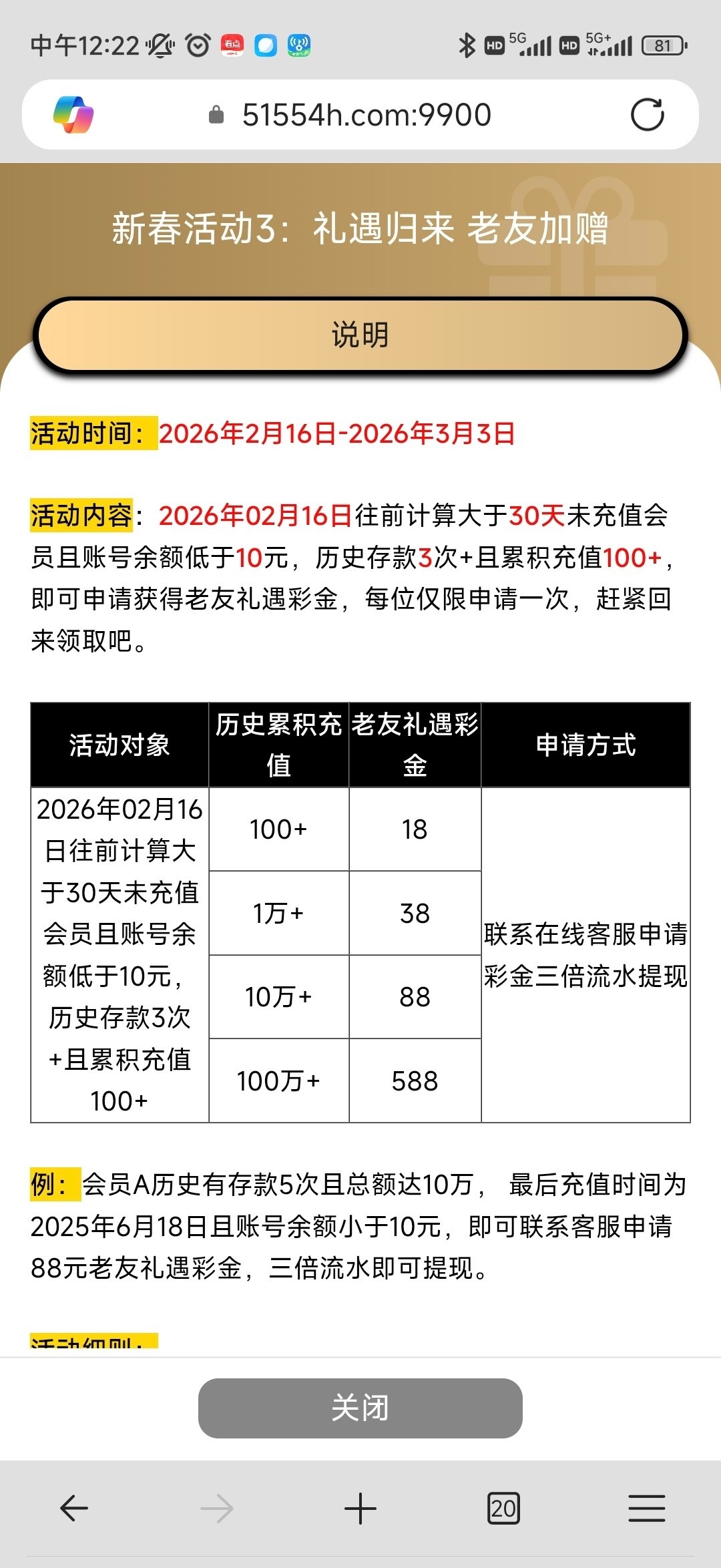 春节活动(原韩国赌场)看图片活动符合要求的可以去,我给了88,很久以前玩过的老用户最近一个多月没玩的应该都可以申请的